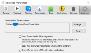 - In settings go to the Advanced tab to check the location where iTunes files are stored.