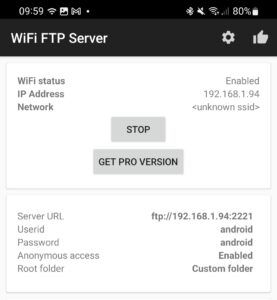 - FTP_PASS – you can configure an alternative FTP password in the settings of the FTP server android app